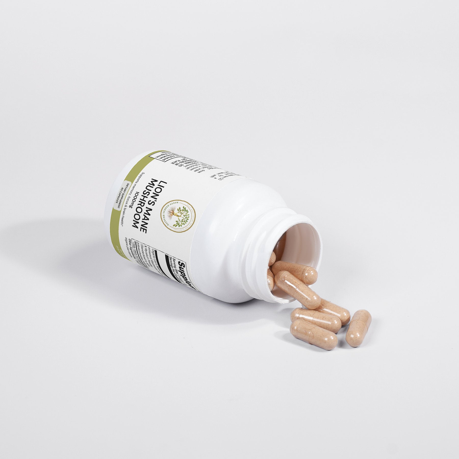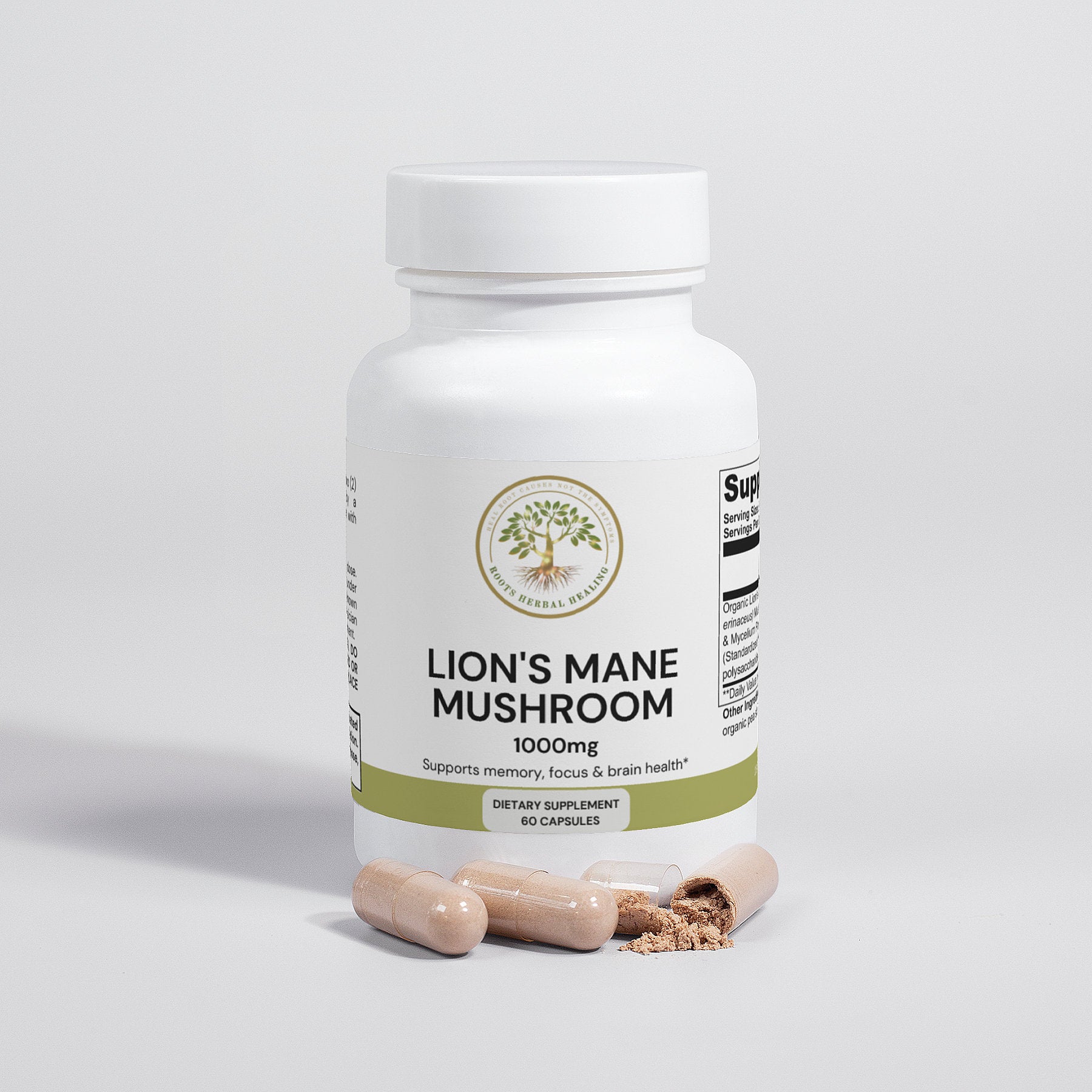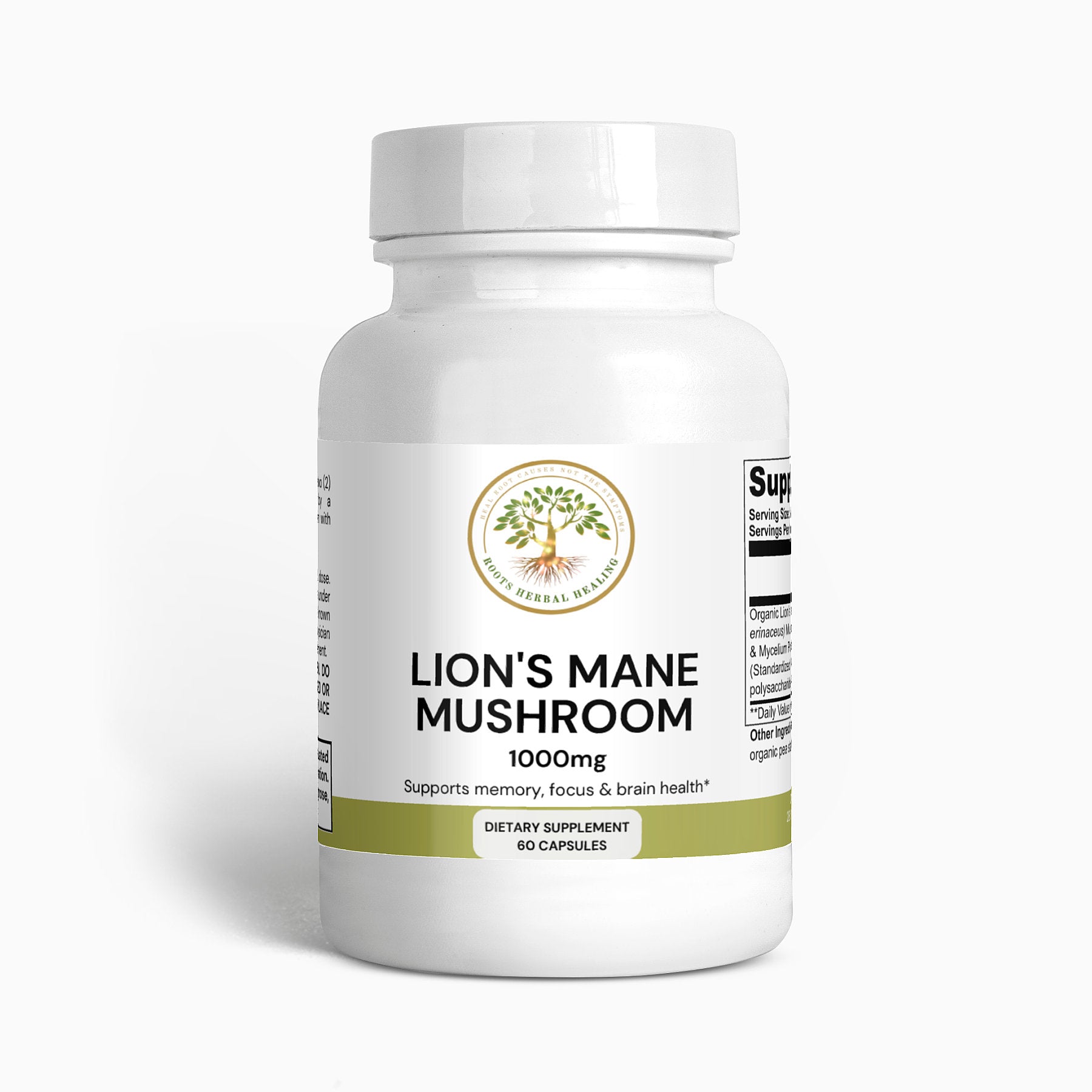 Ingredients: Organic Lion’s Mane (Hericum erinaceus) Mushroom Fruiting Body & Mycelium Powder (Standardized to 40% polysaccharides [400mg]), Organic capsule (pullulan, water), organic pea starch.